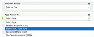 Select “Income Tax – Form 1040” under Apply Payment To.